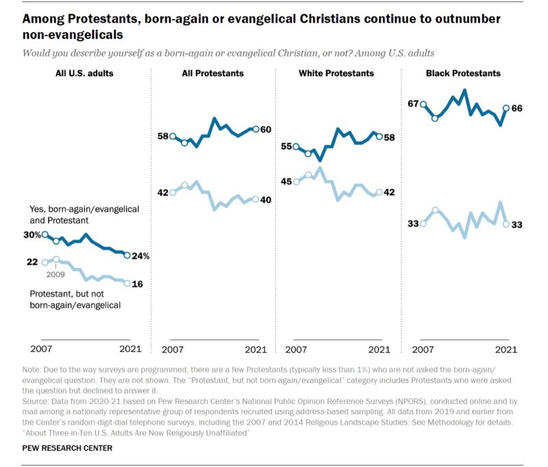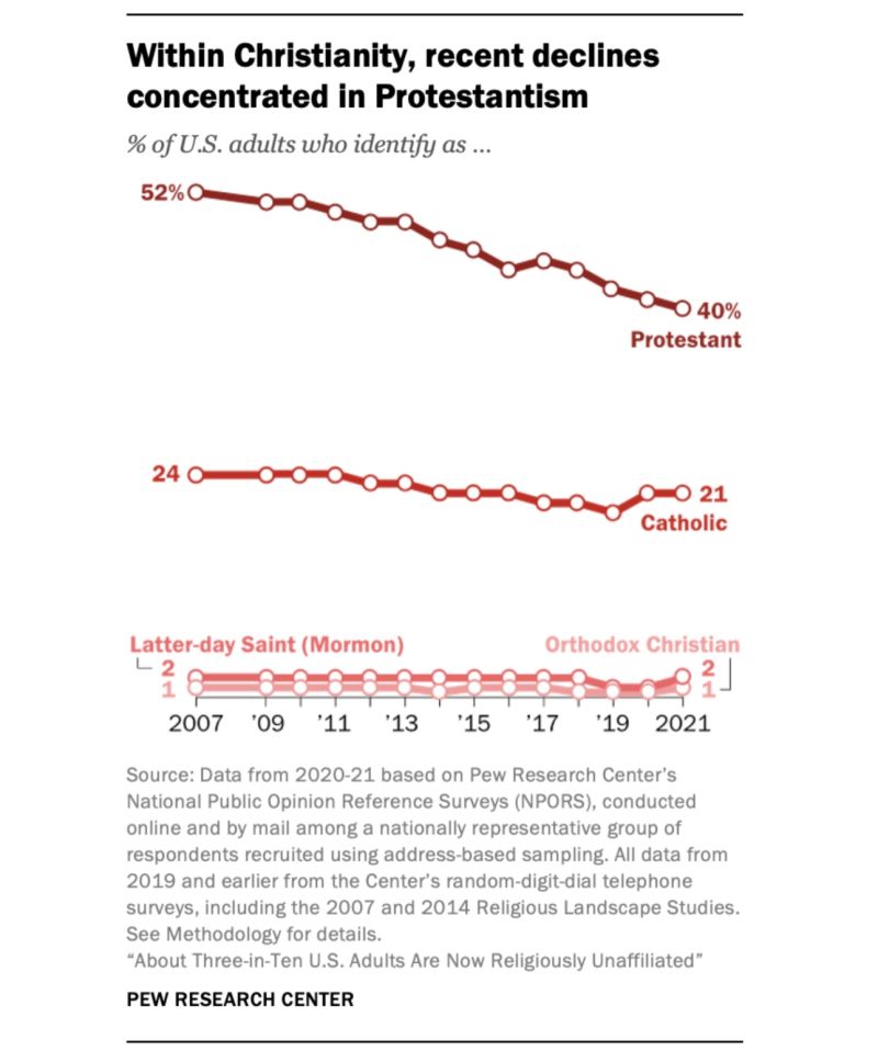 So, in case you were thinking that Jews are the biggest US supporters of Zionism, that is not true. More than 55% of US Jews are antizionism (resource in a previous post). The major support (from population viewpoint) comes from Christian Zionists (a group of Evangelicals). Not all evangelicals though supports Zionism and the percentage is declining through the years, thanks to the young minds. Evangelicals in general form about 24% of US population. Evangelicals are part of Protestants who form 40% and keeps declining in rates higher than Catholics. There is also another interesting observation; most – if not all – antisemitic movements in the US are related to White Christian nationalists which are predominantly Protestants according to my observation. Check the second resource.
